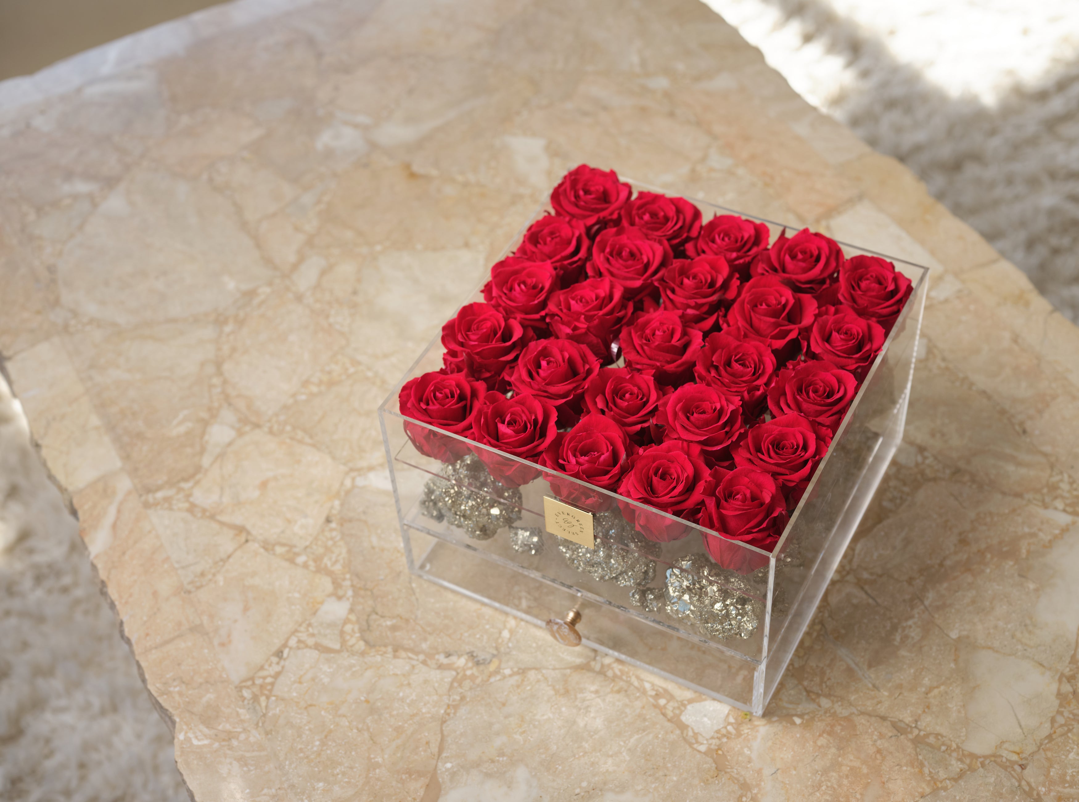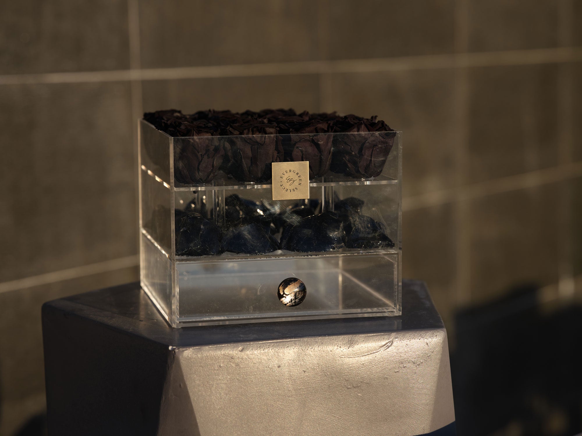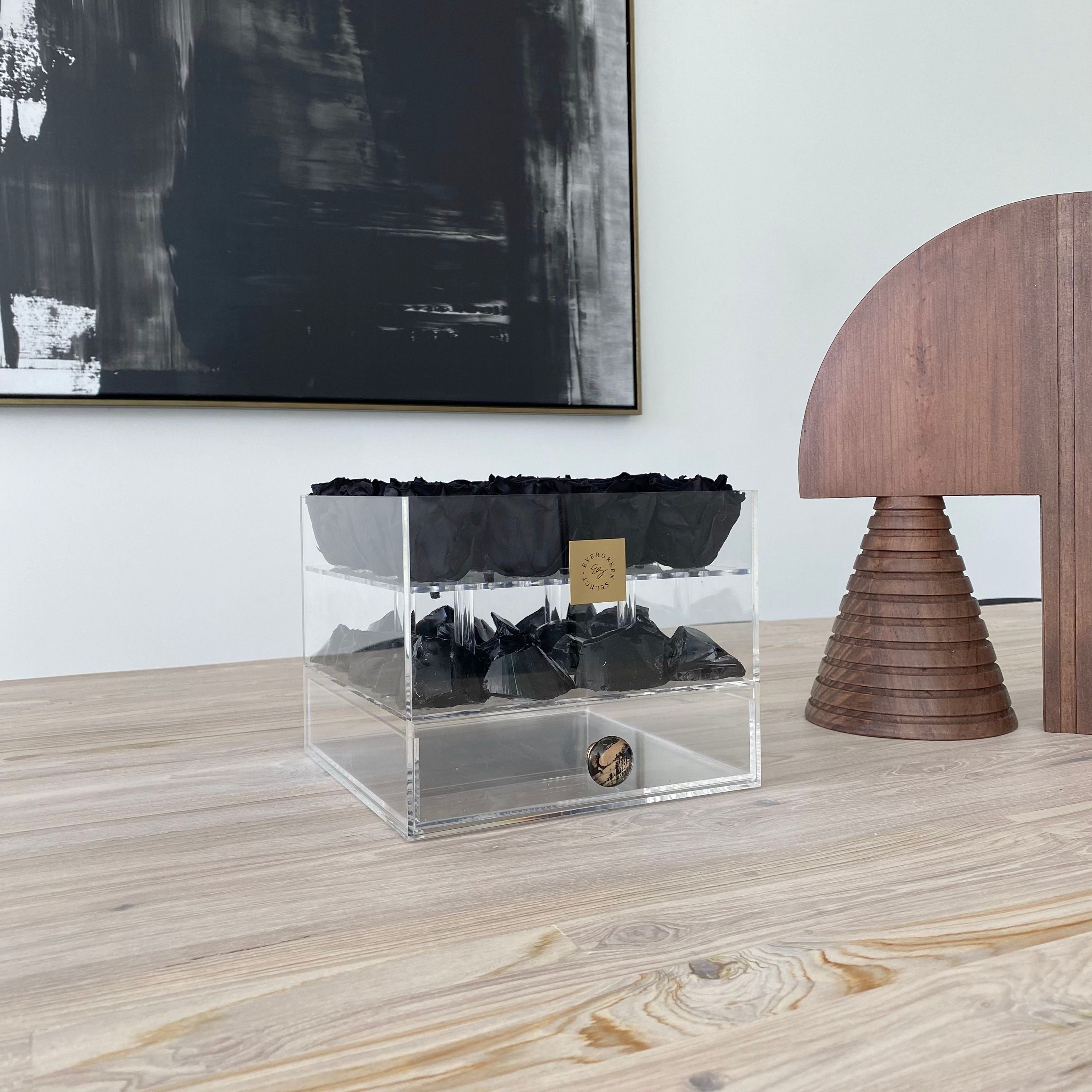 The Noir Neptune piece showcases a powerful collaboration of preserved black roses infused with black obsidian crystals encased inside a usable chest of drawers. It can be a placement on your vanity, altar, desk, and countertop, or anywhere your heart desires. These unique boxes offer the perfect place to store what is important to you such as your written affirmations and intentions, adornments, gems, and jewels, the choice is truly all yours!